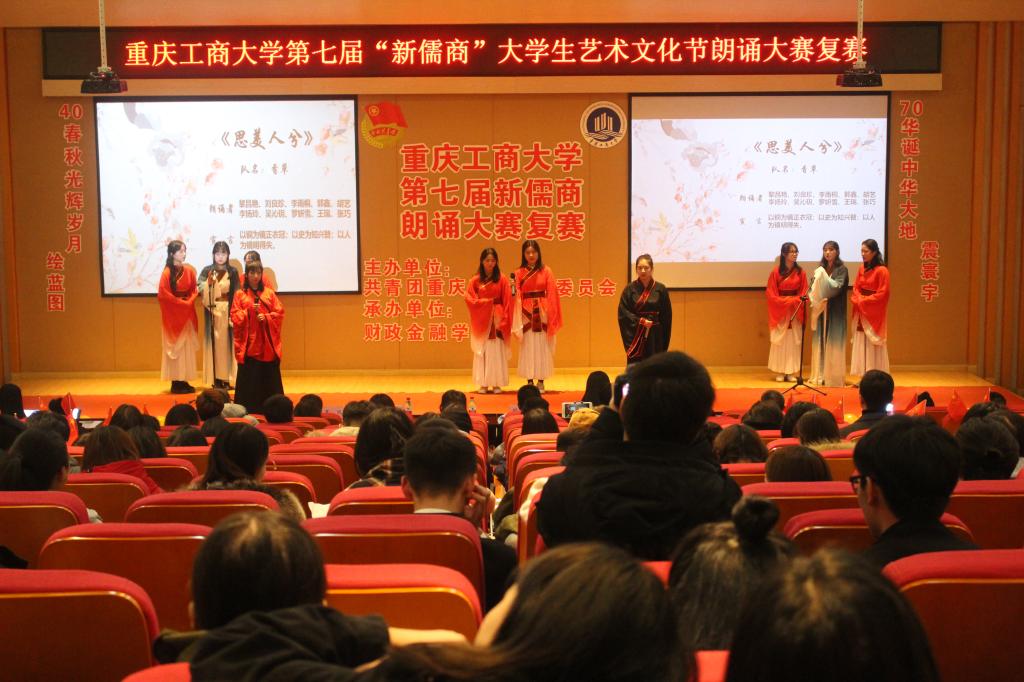 2018年12月16日18:00,由校团委主办,财政金融学院分团委承办的太阳集团tyc9728第七届“新儒商”大学生文化艺术节之朗诵大赛复赛于南岸校区田家炳教学楼209报告厅举行,来自各学院的27组选手经过激烈角逐,最终12组选手进入决赛。