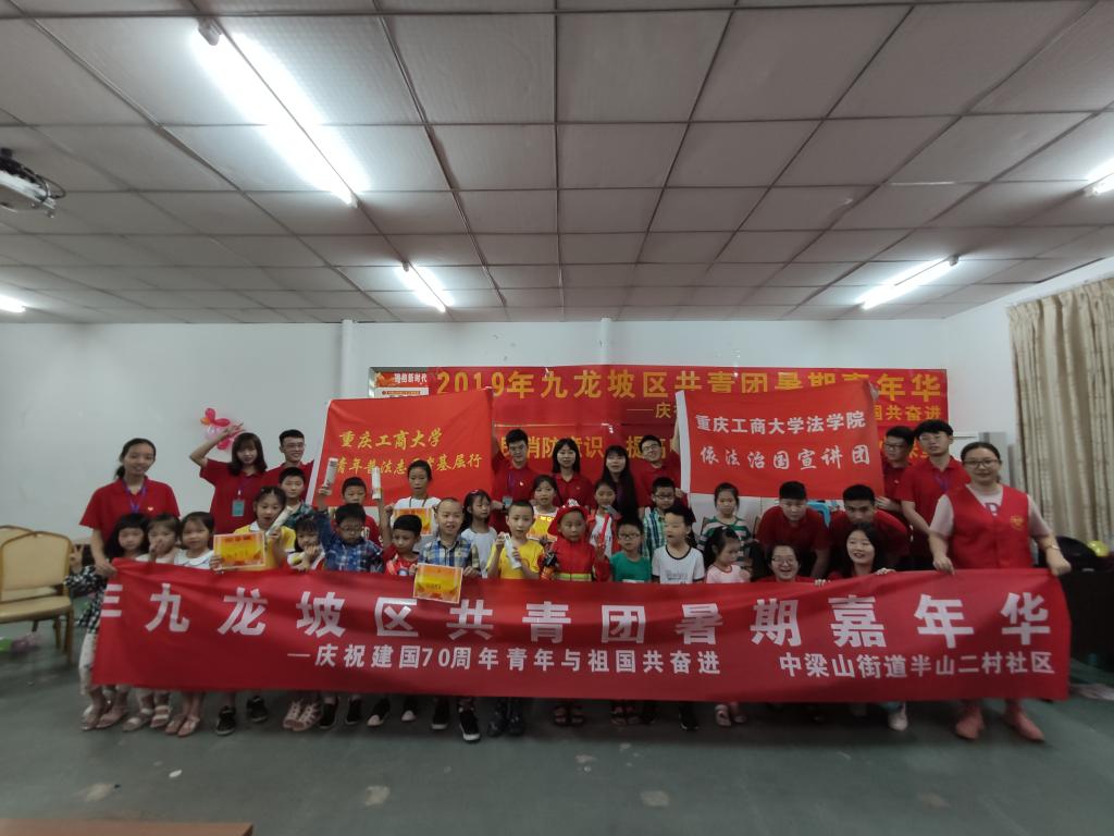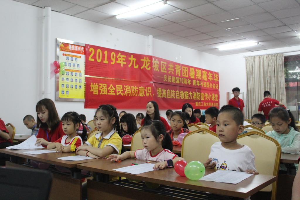 7月8日上午,太阳集团tyc9728法学院2019年暑期“三下乡”社会实践团队来到九龙坡区中梁山街道半山二村社区,组织开展了“消防安全趣味小课堂”活动,帮助社区小朋友提高消防安全意识。