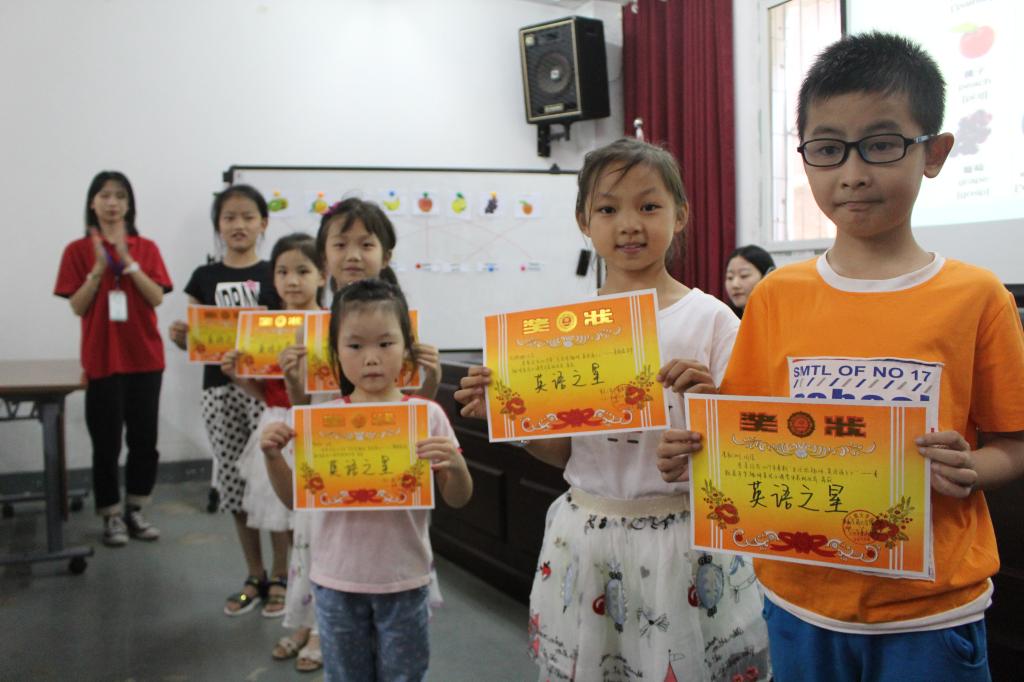 本次课堂以增强小朋友对英语的学习兴趣,敢于张口说英语为目的。首先,主讲人将同学们分为了八个小组,并以猜谜语的方式为切入点,通过鼓励大家张口说英语,到学习简单的英语单词,激发了同学们学习英语的兴趣。在趣味盎然的“英语连连看”游戏环节,主讲人结合所讲授单词进行了以英文方式交流为主的提问,使大家掌握了较为简单的英语问答模式;在紧张刺激的“水果蹲蹲蹲”游戏中,各小组成员积极展现自己,经过两轮比拼,宣讲团评选出了最佳小组以及六位“英语之星”,并颁发奖品与奖状。