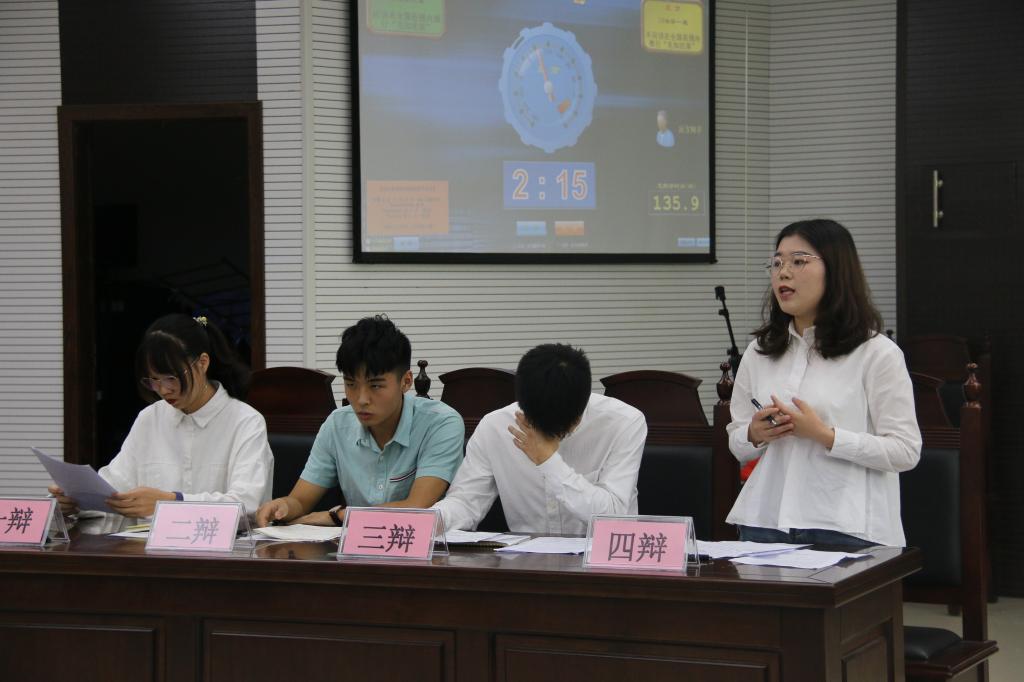 经过初赛和复赛的紧张角逐,2018级法学一班与2019级法学三班会师决赛场,双方将围绕辩题“应/不应该在全国范围推行先知法案”一决高下。两个代表队都派上了自己最强大的阵容,台上选手各个信心十足,比赛过程中唇枪舌战、激烈澎湃、争锋相对。进入质询阶段,双方都展现出了优秀的竞争状态,正方三辩的精彩表现将比赛推向了高潮,场面一度十分激烈。随后的自由辩论阶段,双方辩手各抒己见、思路严谨,把时事新闻和法律知识融会贯通,为大家带来了一场精彩绝伦的辩论。场上辩手们配合默契,他们妙语连珠,当仁不让,辩论场上的思维碰撞、灵光闪现都给在场的评委和观众留下深刻的印象。比赛结束,评委代表总结并评价了本次辩论赛,指出了双方的不足,并传授了一些辩论中的技巧,希望辩手们吸取经验并在以后的辩论赛中有所进步,取得骄人的成绩。