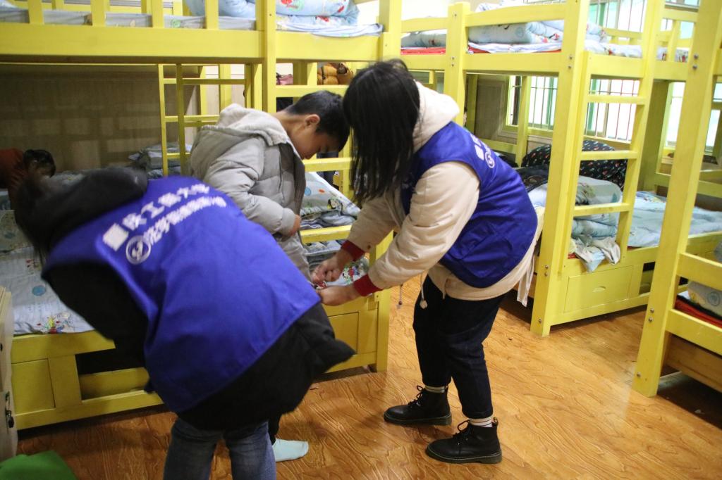 志愿者们于上午9点到达学校,在与学校负责人进行沟通与确认后,在老师的带领下来到了小朋友们的教室。大朋友与小朋友们唱着欢快的儿歌,享受与往常不一样的交流。歌声停下,但快乐继续,志愿者陪着孩子们来到室内游戏场地,与孩子们一起互动,其乐融融。午饭时间结束后,志愿者和小朋友们进行了短暂的休息。等到孩子们醒来,志愿者们耐心地帮助他们穿好衣服,大家手拉手前去操场上玩游戏。小朋友脸上露出的灿烂笑容,是志愿者们最大的慰藉。随着最后一张合影,此次活动画上了圆满的句号。