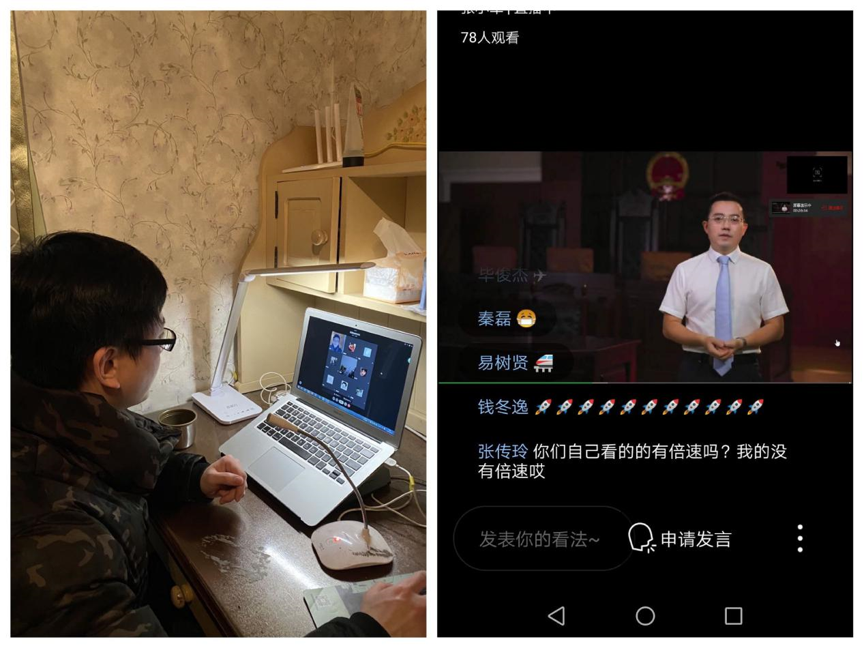 法学院老师们承担的《国际法》《国际商法》《经济法概论》《商标法》《竞争法》《民事诉讼法》《法理学》《劳动与社会保障法》《证据法》《民法总论》等10余门课程顺利完成。下课时,同学们纷纷在平台框里写到“谢谢老师”“老师辛苦了”,积极点赞献花,老师们也感谢认真学习、热爱知识的同学们。