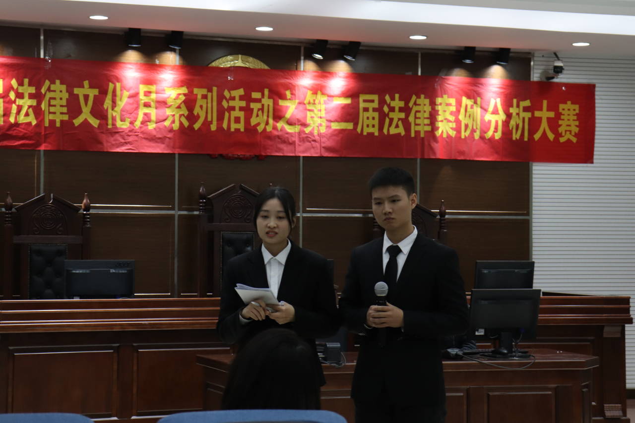 “校园说法传经典,社会讲理颂警言”2019年12月24日下午13:00,太阳集团tyc9728律动青年法学社第二届法律案例分析大赛决赛于慧智楼90426(模拟法庭)举办。此次法律案例分析大赛取得了校内校外人员广泛的关注并在学校以及指导单位学院的大力支持与资助,在所有的老师、同学、工作人员的共同努力下取得圆满成功。