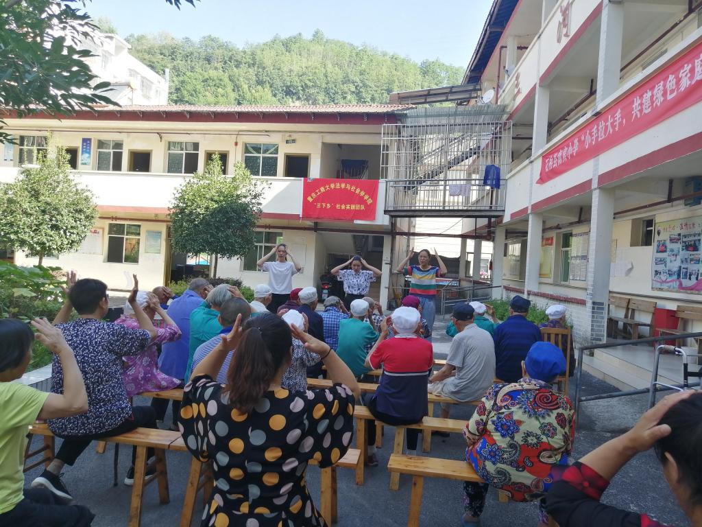 调研团成员带领老人们做操