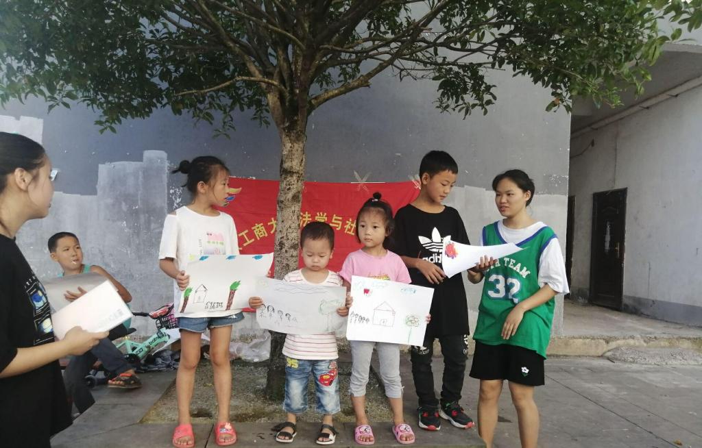 调研团最后一站来到三河镇大河社区,在这里组织了正放暑假的小学生们一起参加“脱贫攻坚家乡梦”主题活动。活动中,调研团队员们为小朋友们讲解了《民法典》对法治社会发展的重大意义,并带领小朋友们画出自己心目中未来家乡走向富裕后的样子。