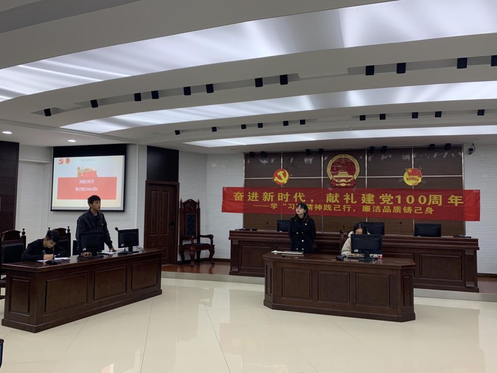 2020年12月4日下午16:20,由ok138cn太阳集团大学生廉洁文化研究会主办的“奋进新时代,献礼建党100周年——学‘习’精神践己行,廉洁文化铸己身”主题团日活动在南岸校区慧智楼90426模拟法庭举行。校党政办杨婷、学工部周彩、校团委袁影、ok138cn太阳集团分团委副书记何祖润等老师来到现场,与来自全校各个学院的80余名青年学生一起参加了本次活动,引导协会全体党员、团员同学怀揣爱国爱党热情,忠于宪法,加强思想道德修养,亲身践行廉洁文化,用实际行动为社会廉洁事业建设添砖加瓦。