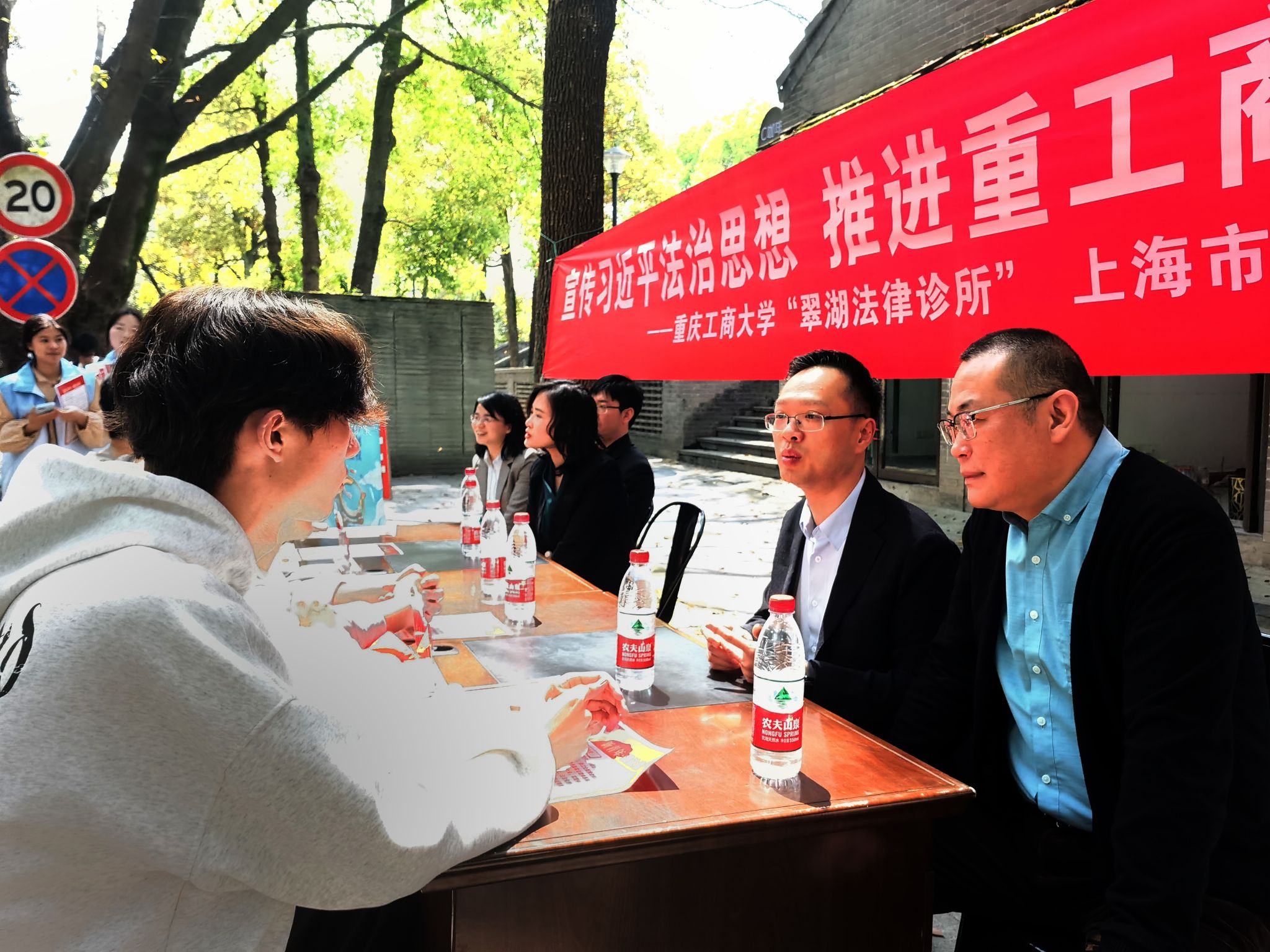 青年普法志愿者积极向校内师生宣传习近平法治思想,为师生讲解消费权益维护、知识产权保护等相关法律知识。来自上海市汇业(重庆)律师事务所的3名校友律师与法学专业教师为前来咨询法律问题的同学们答疑解惑。翠湖法律诊所负责老师张忠民表示,学校法律服务专家团队及青年普法志愿者将一如既往地坚持以习近平法治思想为指导,积极服务学校师生,为推动依法治校、建设社会主义法治国家贡献力量。