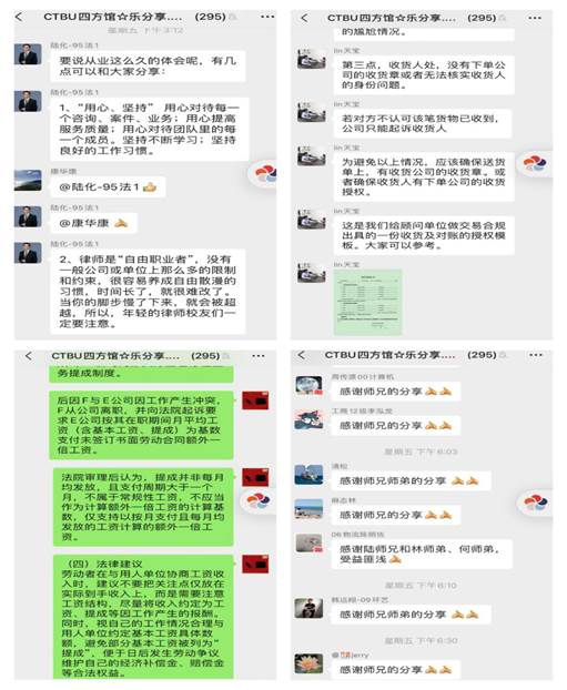 此次分享会,三位校友都采取了“实践经验+案例”的分享方式,降低了非法律专业校友的理解难度,提高了校友们的法律维权意识。校友们纷纷表示本次分享很实用、很接地气,分享会伴随着校友们的一条条感谢留言结束。