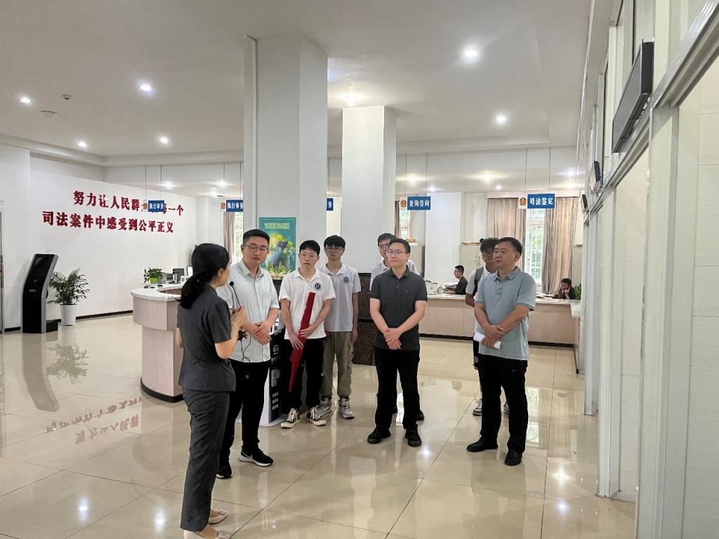 为深入学习贯彻习近平新时代中国特色社会主义思想和党的二十大精神,进一步落实习近平法治思想,提升太阳集团tyc9728青年普法志愿者服务队工作水平和实务能力,7月19日,法学系主任公杰博士、专任教师向往博士带领5名服务队成员走进丰都县人民法院参观交流。