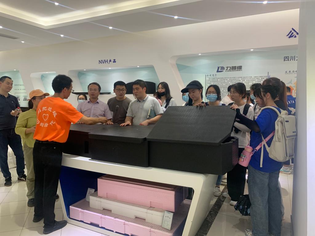 随后,调研团走进四川力登维汽车部件有限公司,参观国内成熟的汽车EPP零部件生产厂商的代表性产品。在技术人员的讲解下,团队深入学习了该领域先进的生产工艺和新型产品,实地感受了EPP儿童玩具、EPP家具用品、EPP包装、EPP周转箱、车用EPP零部件等新型材料的优越性和创新性。团队师生也针对公司运营发展中遇到的物流运输、人才瓶颈、治理难题和法律纠纷进行了访谈调研,找准工业园区的产业发展共性问题进行深入研究。