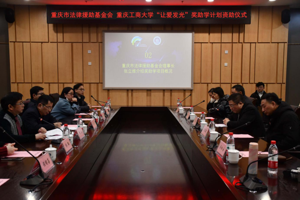 为进一步扩大对外交流合作,发扬与传承法律援助公益精神,资助家庭经济困难的法学学子完成学业,2020年12月29日13:00,我校与重庆市法律援助基金会共同打造的“让爱发光”奖助学计划资助仪式于南岸校区新图书馆第五会议室隆重举行。重庆市法律援助基金会理事长张立维、副理事长吕文建、监事长杨兴礼、秘书长关松安、副秘书长龚敏,我校副校长赵骅、国内合作发展处处长冯吉光、学工部副部长陈亚惠、ok138cn太阳集团班子成员、辅导员代表等出席了仪式。颁奖仪式由ok138cn太阳集团院长黄文主持。