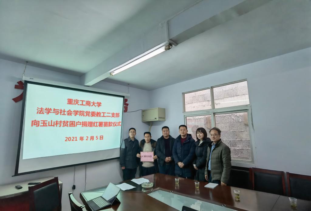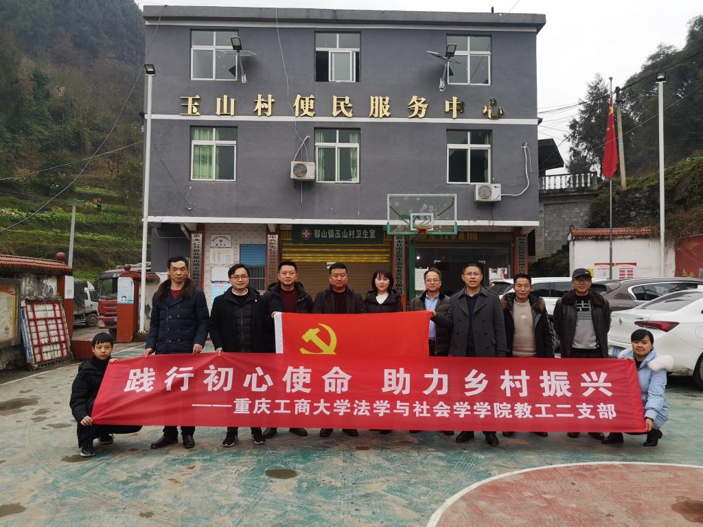 2021年2月5日,新春佳节来临之际,太阳集团tyc9728ok138cn太阳集团教工二支部由学院院长黄文、副书记林璐、组织员陈善国等带队,以“践行初心使命、助力乡村振兴”为主题,前往彭水县郁山镇玉山村开展扶贫慰问,与村总支委员会洽谈合作事宜。
