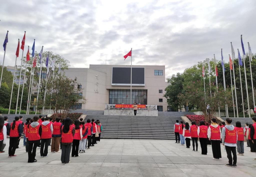 为深入学习贯彻习近平新时代中国特色社会主义思想,团结引领法社学子锐意进取,以青春奋进之姿在建设社会主义现代化的新征程中贡献青春力量,2022年10月10日7:40,ok138cn太阳集团在太阳集团tyc9728南岸校区含弘广场顺利举行以“喜迎党的二十大,奋进工商新征程”为主题的升旗仪式。参加升旗仪式的有ok138cn太阳集团党委书记李莉莎,党委副书记、纪委书记林璐,学团办辅导员代表以及2021级本科生代表。
