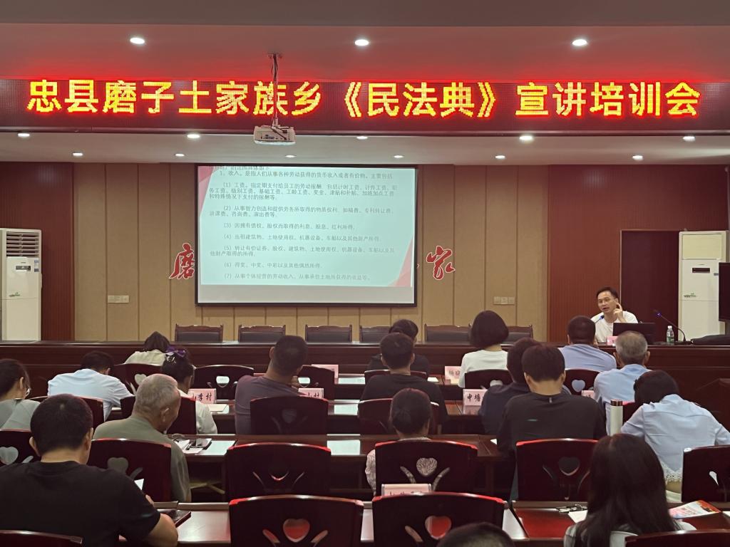实施乡村“法律明白人”培养工程是全国“八五”普法规划确定的四个专项任务之一。本次活动通过宣讲培训的形式,有效提高了磨子土家族乡“法律明白人”运用法治思维和法治手段处理问题的能力,使他们逐步成为学法良师、用法参谋、维权代理,影响和带动身边群众学法、守法、用法,为更好地开展依法治村、化解基层矛盾、维护社会稳定奠定了坚实基础。