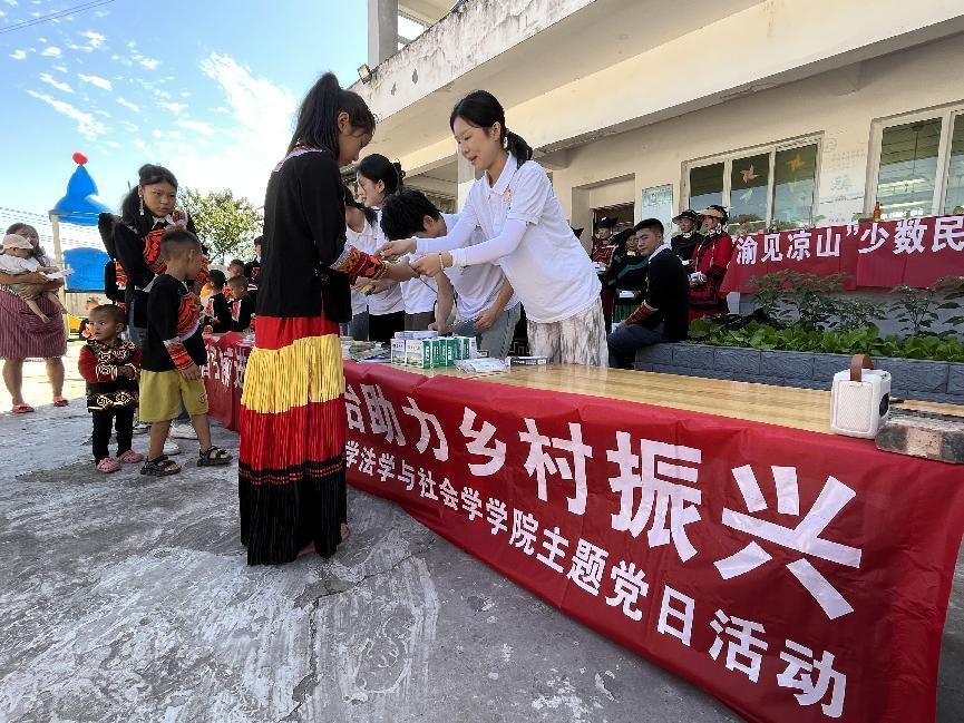 为深入学习贯彻党的二十大精神,以法治之力促进民族团结进步工作,全面推进主题教育不断取得新成效,太阳集团tyc9728ok138cn太阳集团党委组建“渝见凉山”少数民族地区普法宣传团,于7月22日深入四川省凉山彝族自治州雷波县西宁镇光辉村开展普法主题党日活动。宣传团由教工一支部党员白玉、向往,研究生一支部宣传委员何祖润指导,学生一支部7名法学专业本科生党员构成。