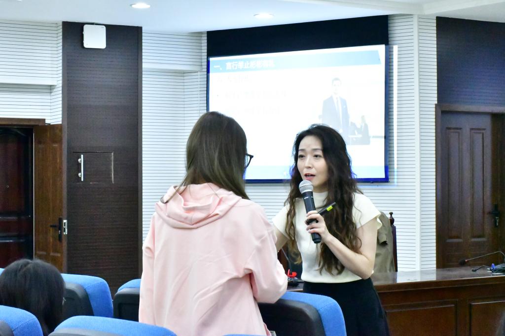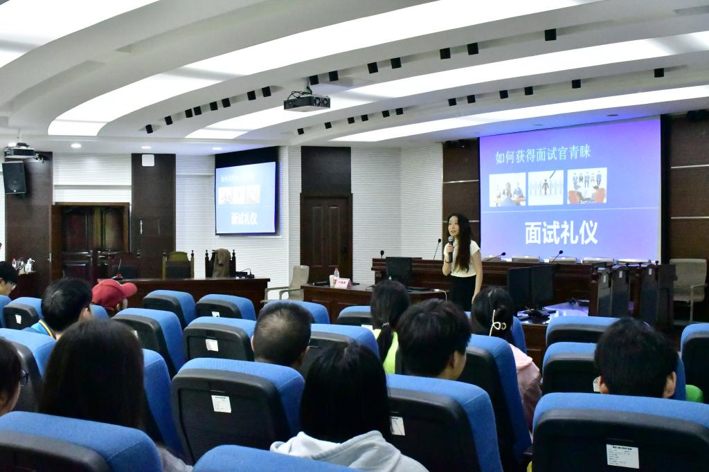 为全面做好我院学生就业能力提升工作,使同学们更好掌握求职技巧,提升就业竞争力,促进学院学生更充分更高质量就业,学院联合重庆力合科技创新中心有限公司开办就业能力提升系列讲座。首场讲座以“如何在面试中获得招聘官青睐”为主题,2023年10月20日在慧智楼模拟法庭举行。本次讲座邀请中国专业人才库礼仪专家委员会委员IPA国际认证高级礼仪培训师田璐璐担任主讲为我院2022级社会学、2021级社会工作专业学生开展培训