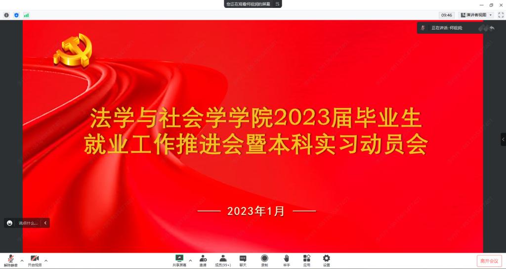 为促进2023届毕业生抓住春招机遇,安排毕业实习相关事宜,ok138cn太阳集团于2023年1月14日上午10:00在腾讯会议线上召开了2023届毕业生就业工作推进会暨本科实习动员会。ok138cn太阳集团党委书记李莉莎、副书记陈琛,副院长刘勇、侯明喜,各专业系主任、实践教学主任、本硕毕业班辅导员与2023届全体毕业生参加了本次会议。会议由学团办主任、就业联络员何祖润主持。