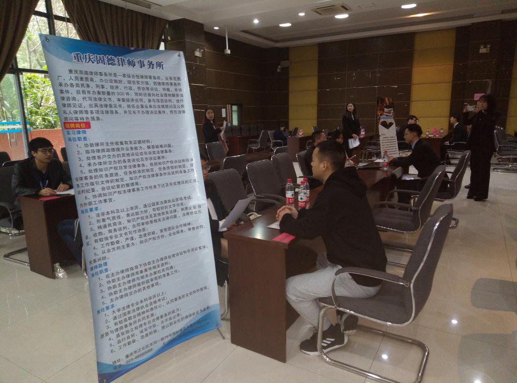 此次招聘会有包括重庆季霖律师事务所、重庆瀚墨律师事务所、重庆豪泰律师事务所等十七家律所的相关人员到场,法学院16级的毕业生们积极踊跃地参加了此次校园招聘会。用人单位对毕业生们一一进行了面试,各律所的负责人期待能有优秀毕业生适合本单位提供的岗位,也能和法学院建立友好的合作关系。最后,经过此次招聘会,法学院的毕业生们都得到了一定收获,表现良好的被用人单位录用,其余毕业生也收获了一些找工作的经验,此次招聘会圆满成功。