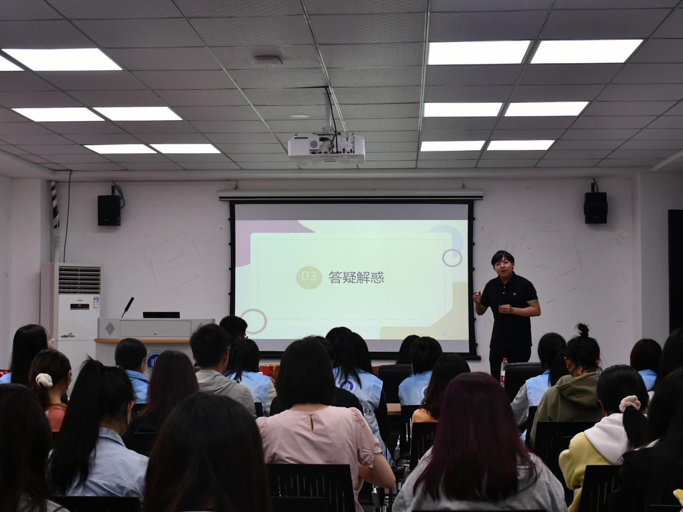 太阳集团tyc9728ok138cn太阳集团“益起爱”青年志愿者服务队2024年4月20日在学生发展中心02会议室开展了“青春献礼二十大,构筑人生新规划”考研考公交流分享会。本次活动作为学院“学长就业讲堂”系列活动之一,邀请到专任教师卢博参会指导,2020级苏小松、张鑫、孟杰、袁双怡四名毕业生担任主讲人。