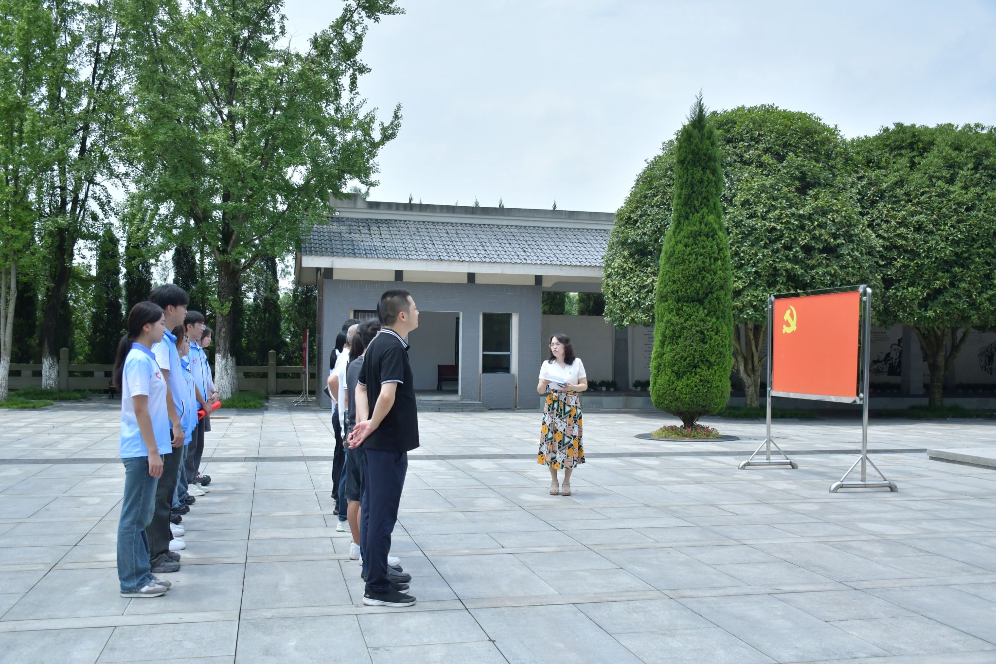 在杨闇公烈士陵园,李莉莎带领党员师生召开了党纪学习教育现场学习会。会上,陈善国介绍了杨闇公生平主要情况。李莉莎领学了杨闇公日记中关于党的组织纪律、廉洁纪律、群众纪律的论述。全体党员在李莉莎的带领下庄严宣誓,重温入党誓词。